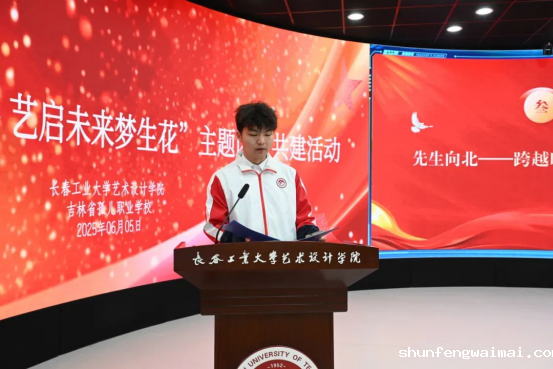 活动中,省孤儿职业学校的师生在艺术设计学院师生志愿者的引导下,步入校园开启“青春之旅”。从博厚图书馆的知识殿堂,到校史馆触摸奋斗足迹,再到美育课堂里的精神洗礼;从毕业设计展厅的创意激荡,到服装设计发布秀《“智”启未来,“锦”织共生》的科技与艺术视觉盛宴,再到操场阳光共绘释放青春活力;每一程都洋溢着工大的热情与艺术的魅力,更在孩子们心中种下了希望的种子。精心安排的团课共学环节,通过观看学院五四精神宣传片《艺启向未来》展现了青年风采;青春舞动《有我》勃发昂扬姿态;话剧《先生向北》观后分享,尤其是黄大年教授“振兴中华,乃我辈之责”的精神感召,引发了同学们关于青年报效祖国的深刻共鸣。活动尾声,艺术设计学院学生将亲手设计的文创礼物赠予孤儿学校师生,寓意着“以艺术为笔,绘就青春华章”,成为两校友谊的珍贵见证。
