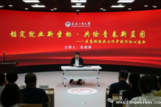 吴成章书记以《锚定就业新坐标 共绘青春新蓝图——在高校就业工作中践行初心使命》为题讲授专题党课。他强调:提高政治站位,深刻把握就业工作的政治属性,将党建引领贯穿人才培养全过程,强化使命担当,号召师生把艺术理想融入国家发展大局,以高质量就业服务彰显育人初心。创新工作机制,探索“党建+就业”融合模式,打造校企协同育人新生态。党课为构建新时代就业工作体系提供了根本遵循,现场师生反响热烈。