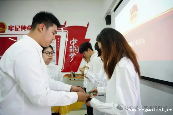 学院团委学生副书记李帅兵为新团员颁发团员证和团徽