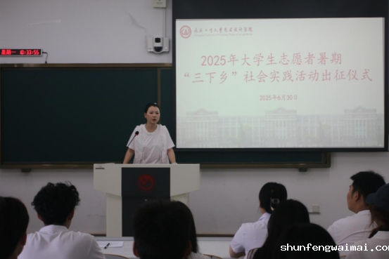本网讯(通讯员:杨东波)6月30日,艺术设计学院2025年大学生志愿者暑期“三下乡”社会实践出征仪式在艺术楼412教室启动。学院团委书记侯天放及志愿者代表齐聚现场。